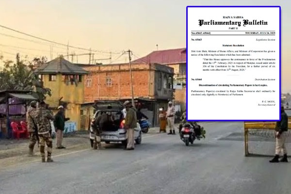 Fri 10:16 మణిపూర్లో రాష్ట్రపతి పాలన మరో ఆరు నెలలు పొడిగింపు రాష్ట్రపతి పాలనను పొడిగిస్తూ హోంమంత్రి అమిత్ షా పార్లమెంట్లో తీర్మానం సభ ఆమోదం.. ఆగస్టు 13 నుంచి అమల్లోకి రానున్న పొడిగింపు వచ్చే ఏడాది ఫిబ్రవరి 13 వరకు మణిపూర్లో రాష్ట్రపతి పాలన Read full story