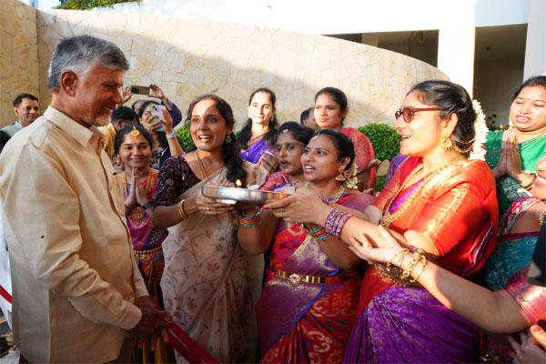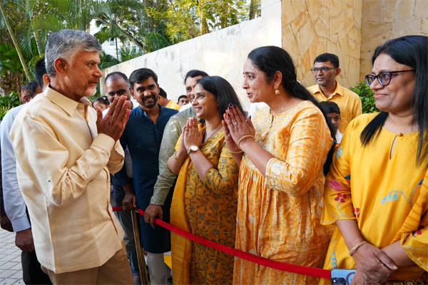 - సాంప్రదాయ వస్త్రధారణలో తరలివచ్చి స్వాగతం పలికిన తెలుగు కుటుంబాలు, మహిళలు