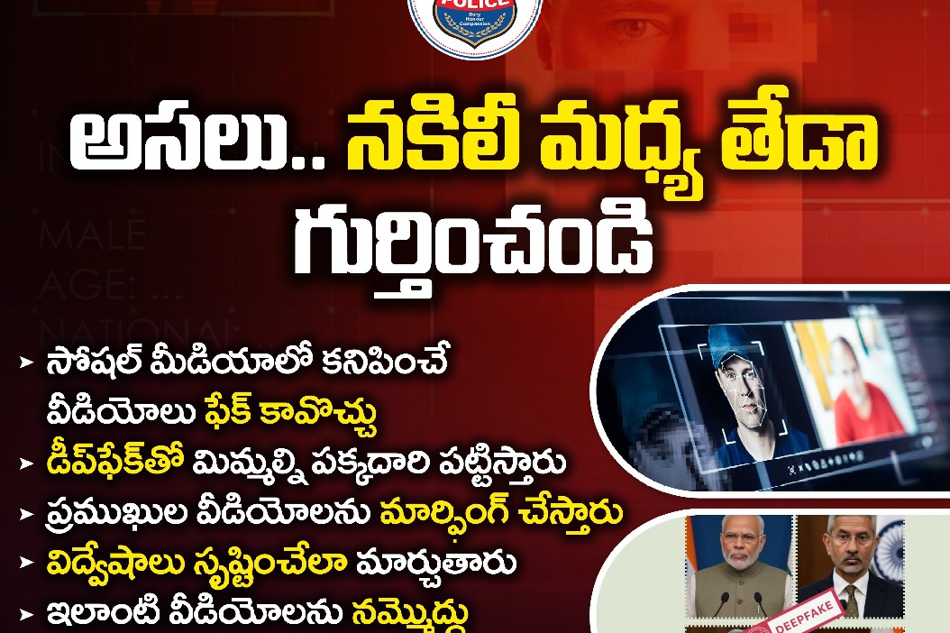 డీప్ ఫేక్ టెక్నాలజీతో మిమ్మల్ని తప్పుదోవ పట్టించే అవకాశం ఉంది... ప్రముఖుల వీడియోలను మార్ఫింగ్ చేసి విద్వేషాలు సృష్టించేలా మార్చే ప్రమాదం ఉంది కాబట్టి, ఇలాంటి వీడియోలను నమ్మవద్దని పోలీసులు హెచ్చరించారు.