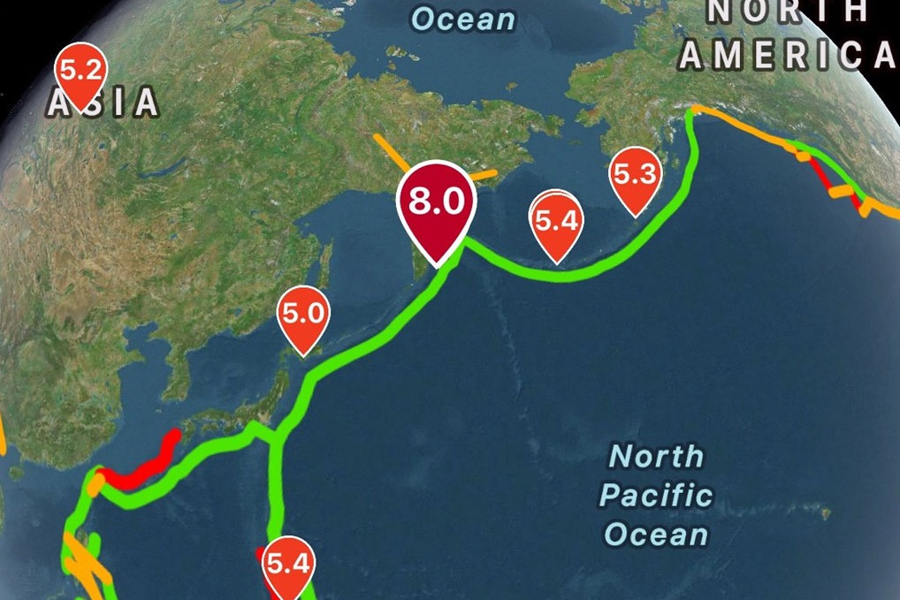 Wed 07:35 రష్యాలో భారీ భూకంపం.. అమెరికా, జపాన్లో సునామీ అలెర్ట్ కమ్చాట్కా ద్వీపకల్పం సమీపంలో ఈ ఉదయం 8.7 తీవ్రతతో భారీ భూకంపం జపాన్, అమెరికా, పసిఫిక్ తీర ప్రాంతాల్లో సునామీ హెచ్చరికలు జారీ 13 అడుగుల ఎత్తులో ఎగసిపడుతున్న అలలు తీరప్రాంత గ్రామాలను ఖాళీ చేయిస్తున్న అధికారులు Read full story