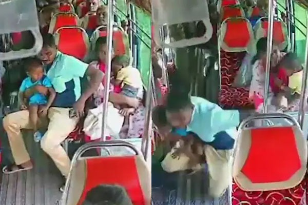 Sun 10:02 ఒళ్లు గగుర్పొడిచే దృశ్యం.. సడన్ బ్రేక్ వేసిన బస్సు డ్రైవర్.. రోడ్డుపై పడిన తల్లి చేతిలోని బిడ్డ తమిళనాడులో కదులుతున్న బస్సు నుంచి జారిపడ్డ ఏడాది బాలుడు డ్రైవర్ హఠాత్తుగా బ్రేకులు వేయడంతో తల్లి చేతిలోంచి జారిన చిన్నారి అదృష్టవశాత్తు స్వల్ప గాయాలతో ప్రాణాలతో బయటపడ్డ పసికందు సమీపంలోని ఓ వృద్ధుడు వెంటనే స్పందించి బాలుడిని కాపాడిన వైనం ఘటనకు సంబంధించిన వీడియో సోషల్ మీడియాలో వైరల్ Read full story