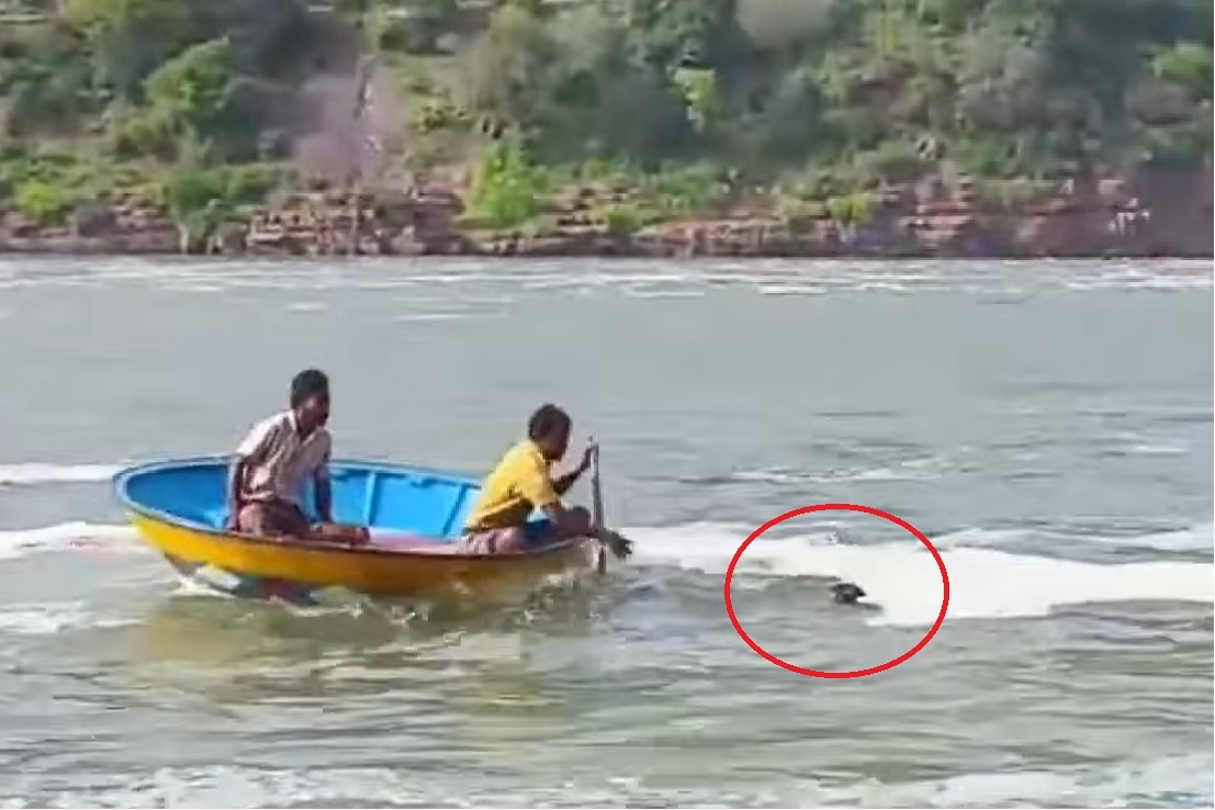 నదిలో కొట్టుకుపోతున్న వ్యక్తిని బోటులో వెళ్లి కాపాడిన స్థానికులు.. వీడియో ఇదిగో!