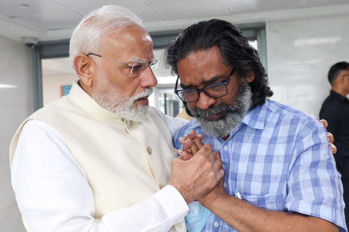 హేమంత్ సొరెన్ ను దగ్గరకు తీసుకుని ఓదార్చిన ప్రధాని మోదీ... వీడియో ఇదిగో!
