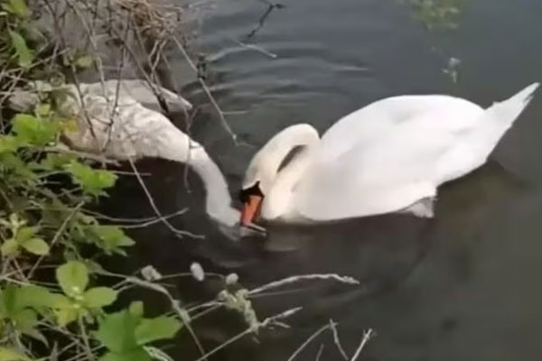 Thu 08:35 ప్రాణం లేని జంట కోసం హంస ఆరాటం.. నెటిజన్లను కదిలిస్తున్న వైరల్ వీడియో ప్రాణం లేని తన జంటను బతికించుకోవాలని ఓ హంస ఆరాటం చెరువులో చలనం లేకుండా పడి ఉన్న నేస్తాన్ని మేల్కొల్పేందుకు తపన సోషల్ మీడియాలో వైరల్ అవుతున్న హృదయ విదారక దృశ్యం జంట పక్షుల మధ్య ఉండే బలమైన ప్రేమకు నిదర్శనమని కామెంట్లు Read full story