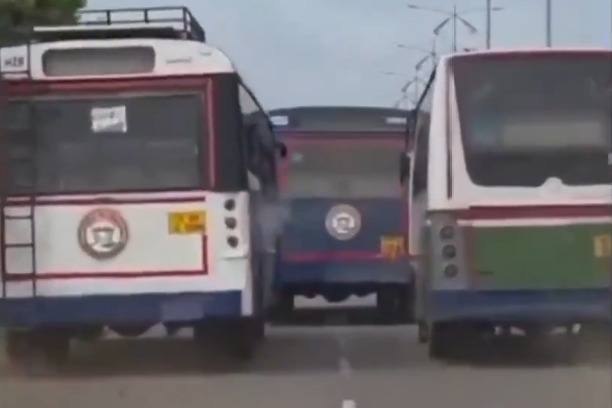 - ప్రధాన రహదారిపై ఒకదానితో ఒకటి పోటీపడ్డ మూడు ఆర్టీసీ బస్సులు