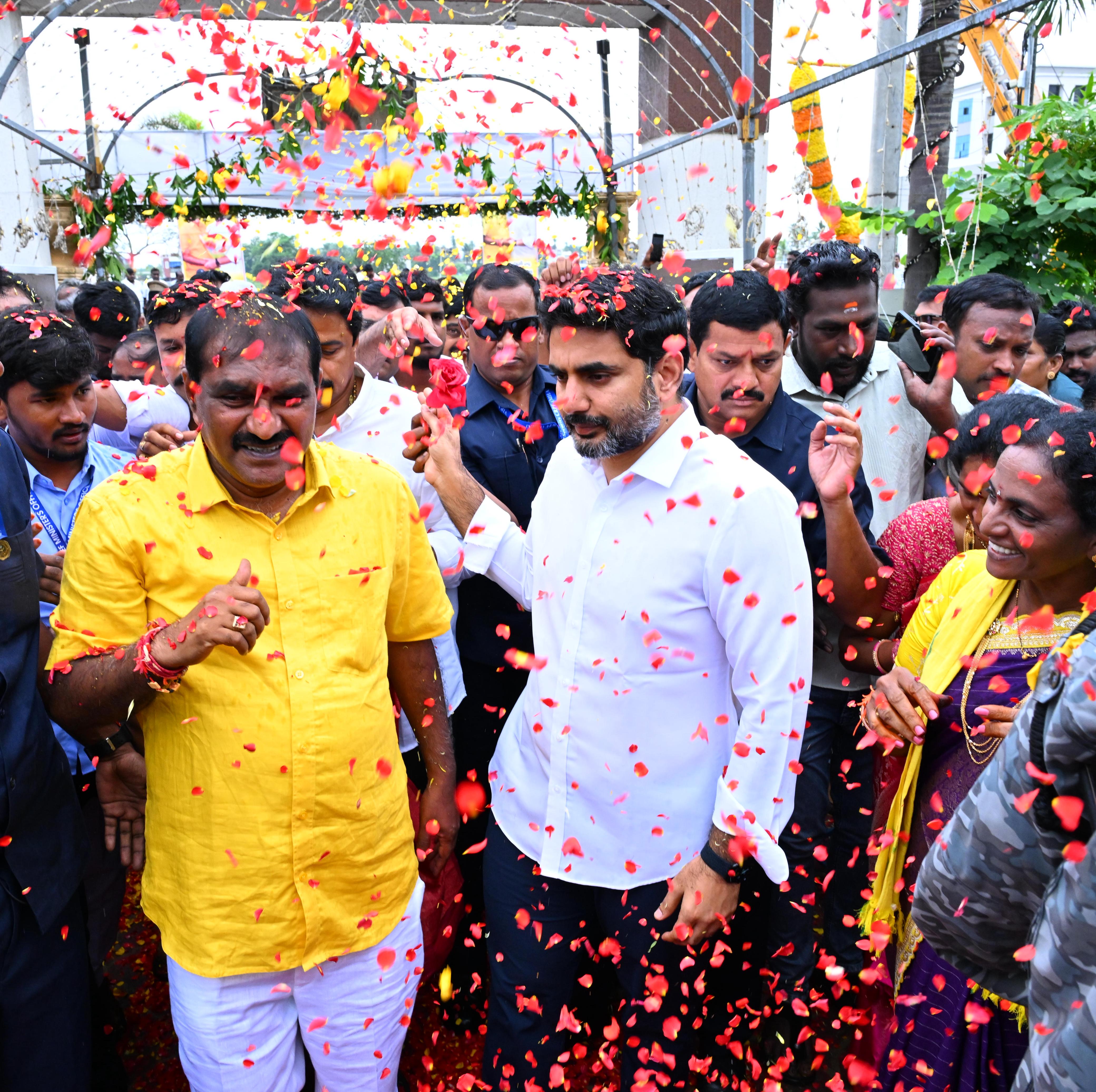 మంత్రి నారా లోకేశ్ ను జలవనరుల శాఖ మంత్రి నిమ్మల రామానాయుడు శాలువాతో సత్కరించారు. ఈ కార్యక్రమంలో స్పీకర్ చింతకాయల అయ్యన్నపాత్రుడు, మంత్రి అనగాని సత్యప్రసాద్, తణుకు ఎమ్మెల్యే అరిమిల్లి రాధాకృష్ణ, నర్సాపురం ఎమ్మెల్యే, ప్రభుత్వ విప్ బొమ్మిడి నాయకర్, నర్సాపురం నియోజకవర్గ టీడీపీ ఇంఛార్జ్ పొత్తూరి రామాంజనేయ రాజు, భీమవరం ఎమ్మెల్యే పులపర్తి రామాంజనేయులు తదితరులు పాల్గొన్నారు.