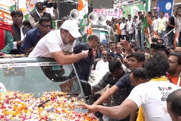Thu 18:26 రాహుల్ గాంధీ డ్రైవర్ పై ఎఫ్ఐఆర్ నమోదు... కాంగ్రెస్, బీజేపీ మధ్య మాటల యుద్ధం బీహార్లో రాహుల్ గాంధీ 'ఓటర్ అధికార్ యాత్ర'లో అపశ్రుతి కాన్వాయ్ వాహనం తగిలి పోలీసు కానిస్టేబుల్కు గాయాలు రాహుల్ గాంధీ వాహన డ్రైవర్పై పోలీసులు ఎఫ్ఐఆర్ నమోదు ఈ ఘటనపై రాహుల్ను విమర్శించిన బీజేపీ నేత షెహజాద్ పూనావాలా గాయపడిన కానిస్టేబుల్కు రాహుల్ గాంధీ పరామర్శ Read full story
