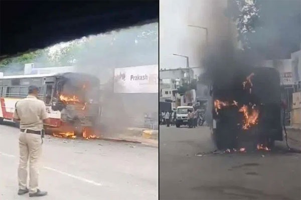 Tue 16:40 మెహిదీపట్నంలో ఆర్టీసీ బస్సులో చెలరేగిన మంటలు.. ఇదిగో వీడియో! లింగంపల్లి నుంచి వస్తుండగా బస్టాండ్ వద్ద ఆగిపోయిన బస్సు స్టార్ట్ కాకపోవడంతో ప్రయాణికులను దించేసిన డ్రైవర్ బాగుచేసే ప్రయత్నంలో ఒక్కసారిగా చెలరేగిన మంటలు డ్రైవర్ అప్రమత్తతతో తప్పిన ప్రమాదం.. బస్సు ముందు భాగం పూర్తిగా దగ్ధం Read full story