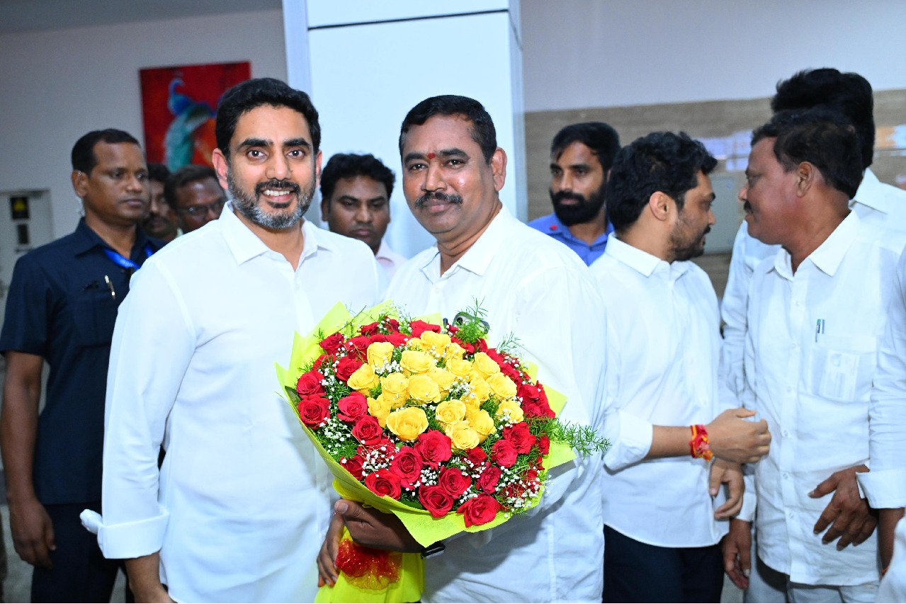 Thu 21:09 రేపు విశాఖలో పర్యటించనున్న నారా లోకేశ్.. పర్యటన వివరాలు ఇవీ విశాఖ విమానాశ్రయంలో స్వాగతం పలికిన ప్రజాప్రతినిధులు, పార్టీ నాయకులు, కార్యకర్తలు రేపు ఉదయం వైజాగ్ కన్వెన్షన్లో జరగనున్న అర్థ సమృద్ధి కాన్ఫరెన్స్లో పాల్గొననున్న మంత్రి భారత మహిళా క్రికెట్ జట్టుతో భేటీ కానున్న మంత్రి Read full story