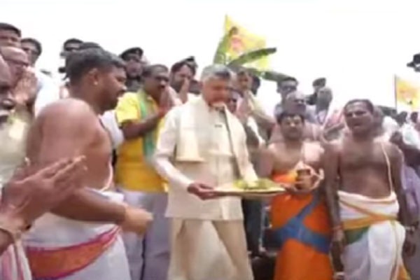 కుప్పం బ్రాంచ్ కెనాల్ వద్ద కృష్ణమ్మకు సీఎం చంద్రబాబు జలహారతి