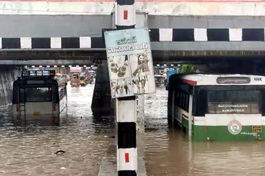 వరంగల్లో థ్రిల్లర్ సీన్.. భారీ వర్షంతో వరదలో చిక్కుకున్న బస్సులు.. ప్రయాణికుల ఆర్తనాదాలు!