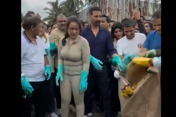 Mon 12:06 బీచ్ ను శుభ్రం చేసిన అక్షయ్ కుమార్, ఫడ్నవిస్ భార్య అమృత.. వీడియో వైరల్ గణేశ్ నిమజ్జనం తర్వాత ముంబై బీచ్లో భారీ క్లీనింగ్ డ్రైవ్ పాల్గొన్న అక్షయ్ కుమార్, అమృత ఫడ్నవిస్ దివ్య ఫౌండేషన్, బీఎంసీ సంయుక్త ఆధ్వర్యంలో కార్యక్రమం జుహు బీచ్లో పేరుకుపోయిన చెత్తను తొలగించిన వాలంటీర్లు ప్రధాని మోదీ స్వచ్ఛ భారత్ స్ఫూర్తితోనే ఈ కార్యక్రమం అన్న అమృత Read full story