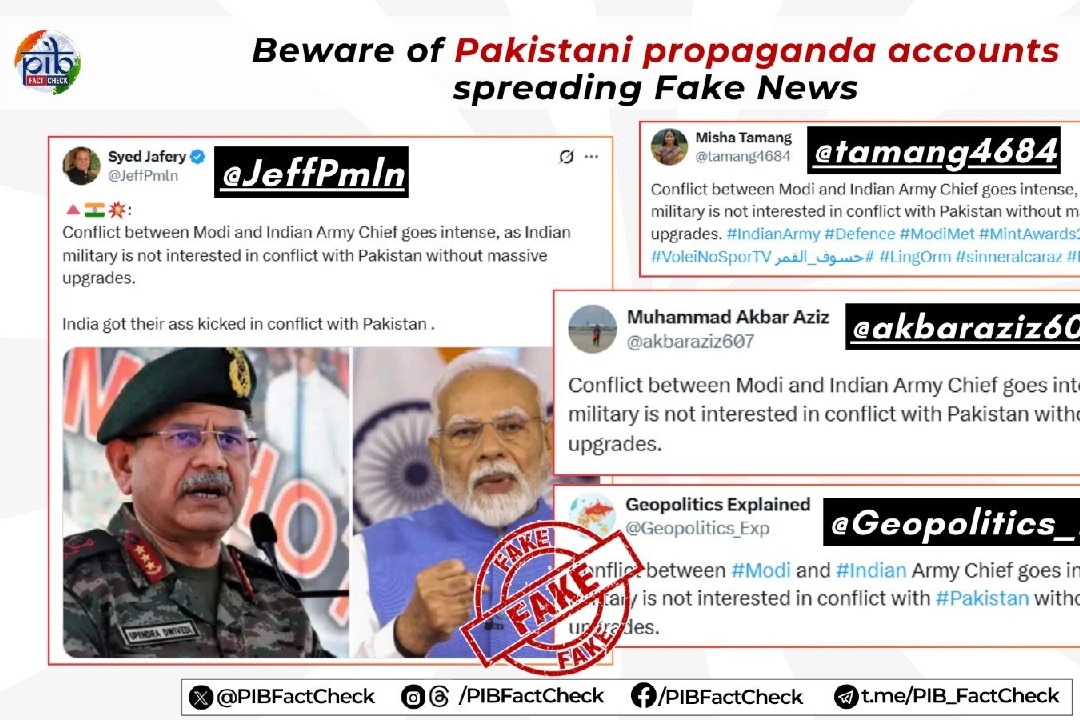 - ప్రధాని మోదీ, ఆర్మీ చీఫ్ మధ్య విభేదాలంటూ పాక్ దుష్ప్రచారం