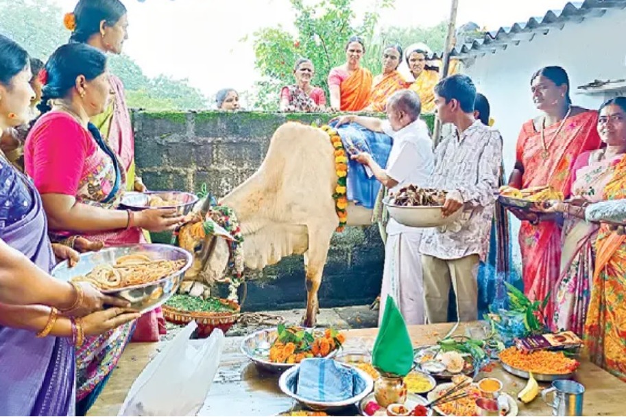 నర్సంపేటలో ఆవుకు సీమంతం.. బంధుమిత్రులను పిలిచి ఘనంగా వేడుక