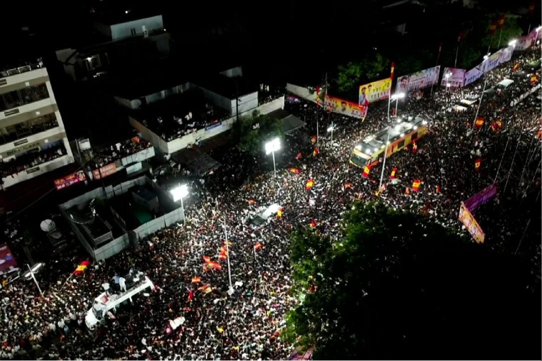 Sat 22:05 విజయ్ ప్రచార సభ తొక్కిసలాట.. 36కి చేరిన మృతులు, ప్రధాని మోదీ సంతాపం మృతుల్లో ఆరుగురు చిన్నారులు, 16 మంది మహిళలు 40 మందికి పైగా గాయపడి ఆసుపత్రిలో చికిత్స పొందుతున్నారని మంత్రి వెల్లడి కరూర్ ప్రమాద ఘటనపై ప్రధానమంత్రి దిగ్భ్రాంతి Read full story