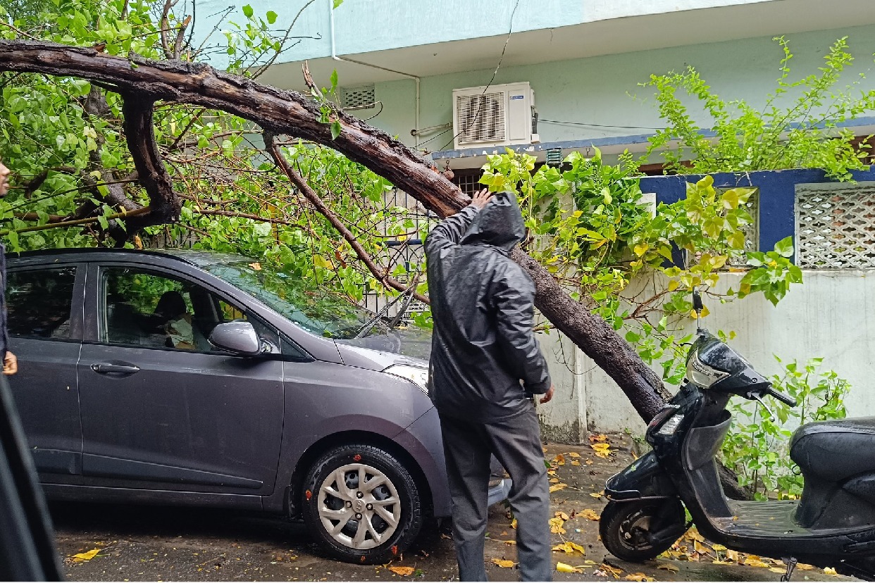 • విశాఖలో బలమైన ఈదురుగాలులకు నేలకూలిన భారీ వృక్షాలు