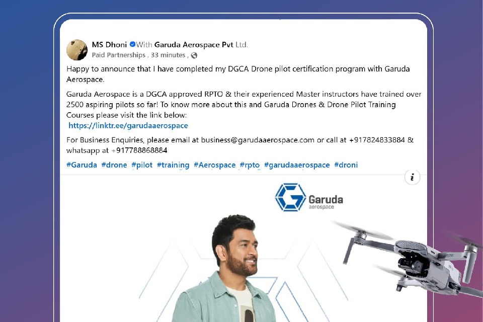 ధోనీ మా వద్ద శిక్షణ తీసుకుని డ్రోన్ పైలట్ లైసెన్స్ సాధించాడు: గరుడ ఏరోస్పేస్ వెల్లడి