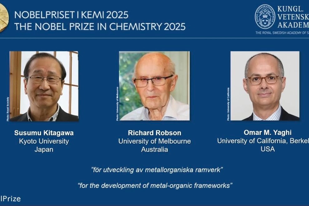 ఎడారి గాలి నుంచి స్వచ్ఛమైన నీటిని సేకరించడం, వాతావరణంలోని హానికర కర్బన ఉద్గారాలను బంధించడం వంటి అసాధారణ పనులకు వీలు కల్పించే వినూత్న ఆవిష్కరణకు ఈ ఏడాది రసాయన శాస్త్రంలో అత్యున్నత పురస్కారం లభించింది. 2025 సంవత్సరానికి గాను ప్రతిష్ఠాత్మక నోబెల్ బహుమతిని ముగ్గురు శాస్త్రవేత్తలు సంయుక్తంగా గెలుచుకున్నారు. జపాన్కు చెందిన సుసుము కిటగావా, ఆస్ట్రేలియాకు చెందిన రిచర్డ్ రాబ్సన్, అమెరికాకు చెందిన ఒమర్ ఎం. యాఘీలను ఈ పురస్కారానికి ఎంపిక చేసినట్టు రాయల్ స్వీడిష్ అకాడమీ ఆఫ్ సైన్సెస్ బుధవారం ప్రకటించింది.
