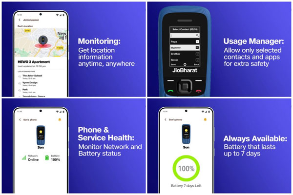 ఈ ఫోన్లు జియో స్టోర్లు, జియోమార్ట్, అమెజాన్, స్విగ్గీ ఇన్స్టామార్ట్ సహా ఇతర ఆఫ్లైన్ రిటైల్ దుకాణాల్లో అందుబాటులో ఉంటాయని కంపెనీ తెలిపింది. అనవసరమైన కాల్స్, సోషల్ మీడియా వంటి వాటి నుంచి తమ ఆత్మీయులను దూరంగా ఉంచాలనుకునే కుటుంబాలకు ఈ ఫోన్లు ఎంతగానో ఉపయోగపడతాయని జియో పేర్కొంది.