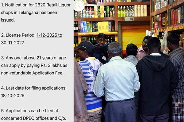 Fri 14:09 మద్యం టెండర్లకు భారీగా తగ్గిన డిమాండ్.. దరఖాస్తుల కోసం అధికారుల పాట్లు! తెలంగాణలో మద్యం టెండర్లకు అనూహ్యంగా తగ్గిన స్పందన రేపటితో గడువు ముగింపు.. ఇప్పటివరకూ కేవలం 25 వేల దరఖాస్తులు గతేడాది 1.31 లక్షల దరఖాస్తులతో పోలిస్తే ఈసారి తీవ్ర నిరాశ దరఖాస్తు చేయాలంటూ పాత లైసెన్సుదారులకు అధికారుల సందేశాలు వ్యాపారులు సిండికేట్గా మారడం వల్లే ఈ పరిస్థితని ఆరోపణలు Read full story