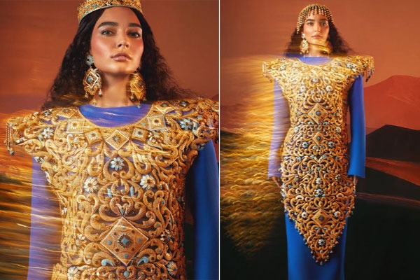 సౌదీ అరేబియాకు చెందిన ప్రముఖ ఆభరణాల సంస్థ ‘అల్ రొమైజాన్ గోల్డ్’ ఈ అద్భుతమైన వస్త్రాన్ని తయారు చేసింది. పూర్తిగా 24 క్యారెట్ల స్వచ్ఛమైన బంగారంతో రూపొందించిన ఈ డ్రెస్‌లో అత్యంత విలువైన వజ్రాలు, కెంపులు, పచ్చలు, రత్నాలను పొదిగారు. మధ్యప్రాచ్య కళా నైపుణ్యం ఉట్టిపడేలా సంపద, అందం, సాధికారతకు ప్రతీకలుగా నిలిచే డిజైన్లతో దీనిని అలంకరించారు. ఈ డ్రెస్ కేవలం ఒక వస్త్రంలా కాకుండా, ధరించగలిగే కళాఖండంలా కనిపిస్తుంది.