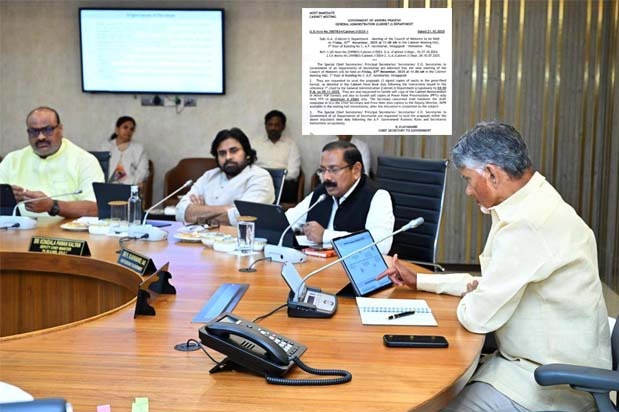 - సచివాలయంలో నవంబర్ 7న ఉదయం 11 గంటలకు సీఎం చంద్రబాబు అధ్యక్షతన కేబినెట్ సమావేశం