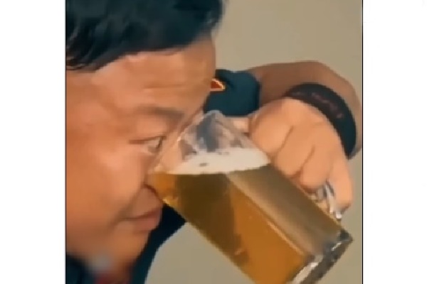 - ముక్కుతో గ్లాసుడు బీరు తాగుతున్న వ్యక్తి వీడియో