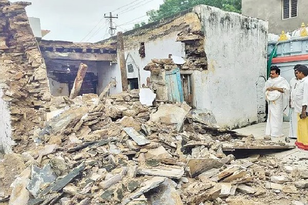 - వరుస వర్షాల కారణంగా శిథిలమై కూలిపోయిన కట్టడం
