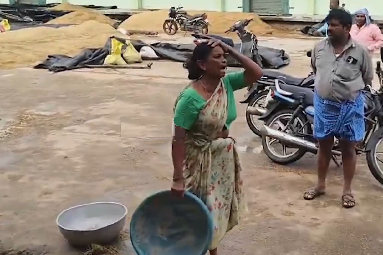 డ్రైనేజీ పాలైన ధాన్యం.. గుండెలు బాదుకుంటూ ఏడుస్తున్న మహిళా రైతు.. వీడియో ఇదిగో!