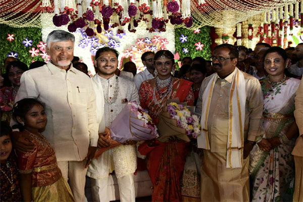 - వధూవరులు సాయిసూర్య, అమర చరితలను ఆశీర్వదించిన చంద్రబాబు