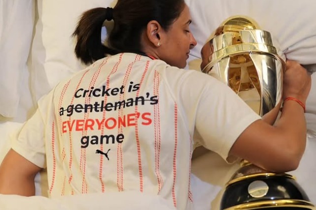 క్రికెట్ను సాధారణంగా జెంటిల్మెన్ గేమ్గా అభివర్ణిస్తుంటారు. అయితే, ఈ అభివర్ణన కాలం చెల్లిందని భారత మహిళా క్రికెట్ జట్టు సారథి హర్మన్ప్రీత్ కౌర్ పరోక్షంగా చెబుతున్నారు. ఆమె సారథ్యంలోని భారత జట్టు దాదాపు 47 ఏళ్ల భారత అభిమానుల కలను సాకారం చేసింది. ఈ నేపథ్యంలో ఆమె సోమవారం ఒక ఫొటోను సామాజిక మాధ్యమం వేదికగా పంచుకుంది. ఈ చిత్రం వైరల్గా మారింది.