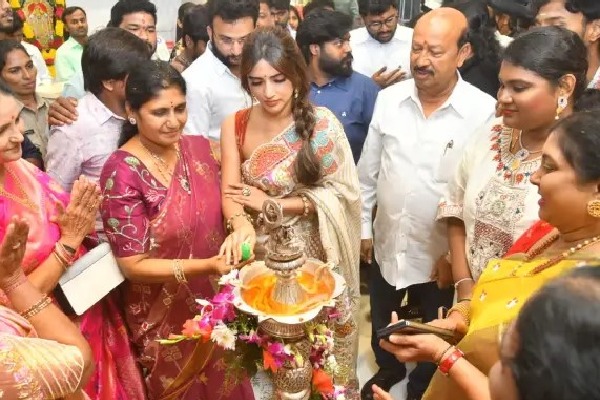 - జ్యోతి ప్రజ్వలన చేసి వస్త్ర దుకాణాన్ని ప్రారంభించిన శ్రీలీల