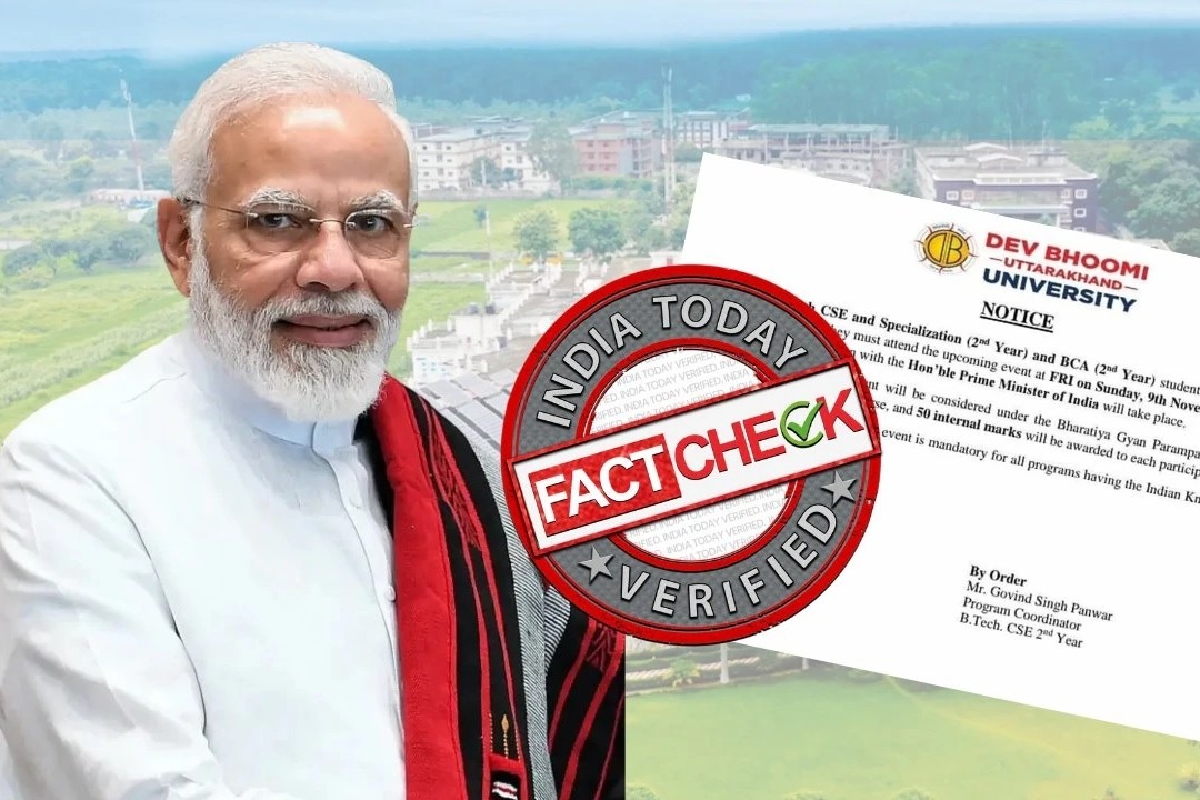 ప్రధాని నరేంద్ర మోదీ సభకు హాజరయ్యే విద్యార్థులకు ప్రత్యేకంగా 50 అదనపు మార్కులు వేస్తామంటూ ఓ యూనివర్సిటీ జారీ చేసిన సర్కులర్ శనివారం సోషల్ మీడియాలో వైరల్ గా మారింది. ఉత్తరాఖండ్ లోని దేవ్ భూమి యూనివర్సిటీకి చెందిన ఈ నోటీసు సంచలనంగా మారింది. దీంతో ప్రెస్ ఇన్ఫర్మేషన్ బ్యూరో (పీఐబీ) స్పందించి విచారణ చేసి ఆ సర్కులర్ ఫేక్ అని తేల్చింది. వివరాల్లోకి వెళితే..