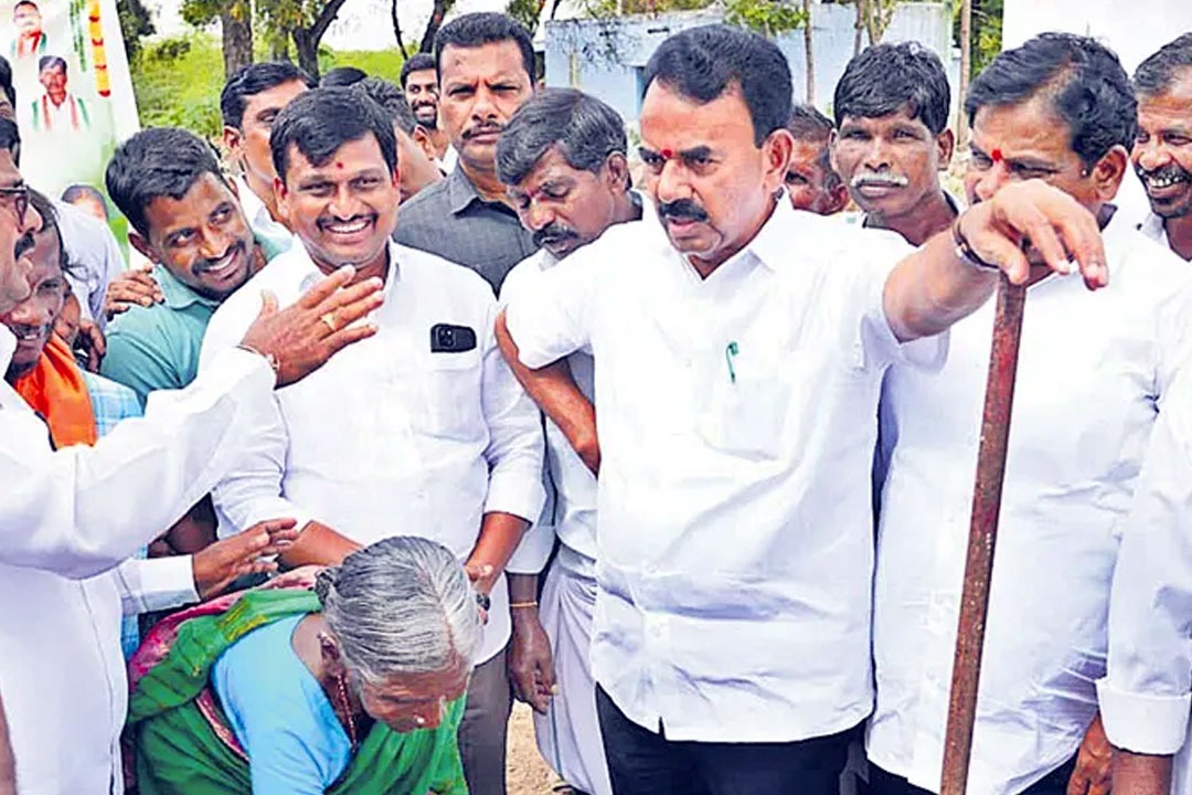 వితంతువుతో ఇందిరమ్మ ఇంటికి భూమిపూజ చేయించిన మంత్రి జూపల్లి