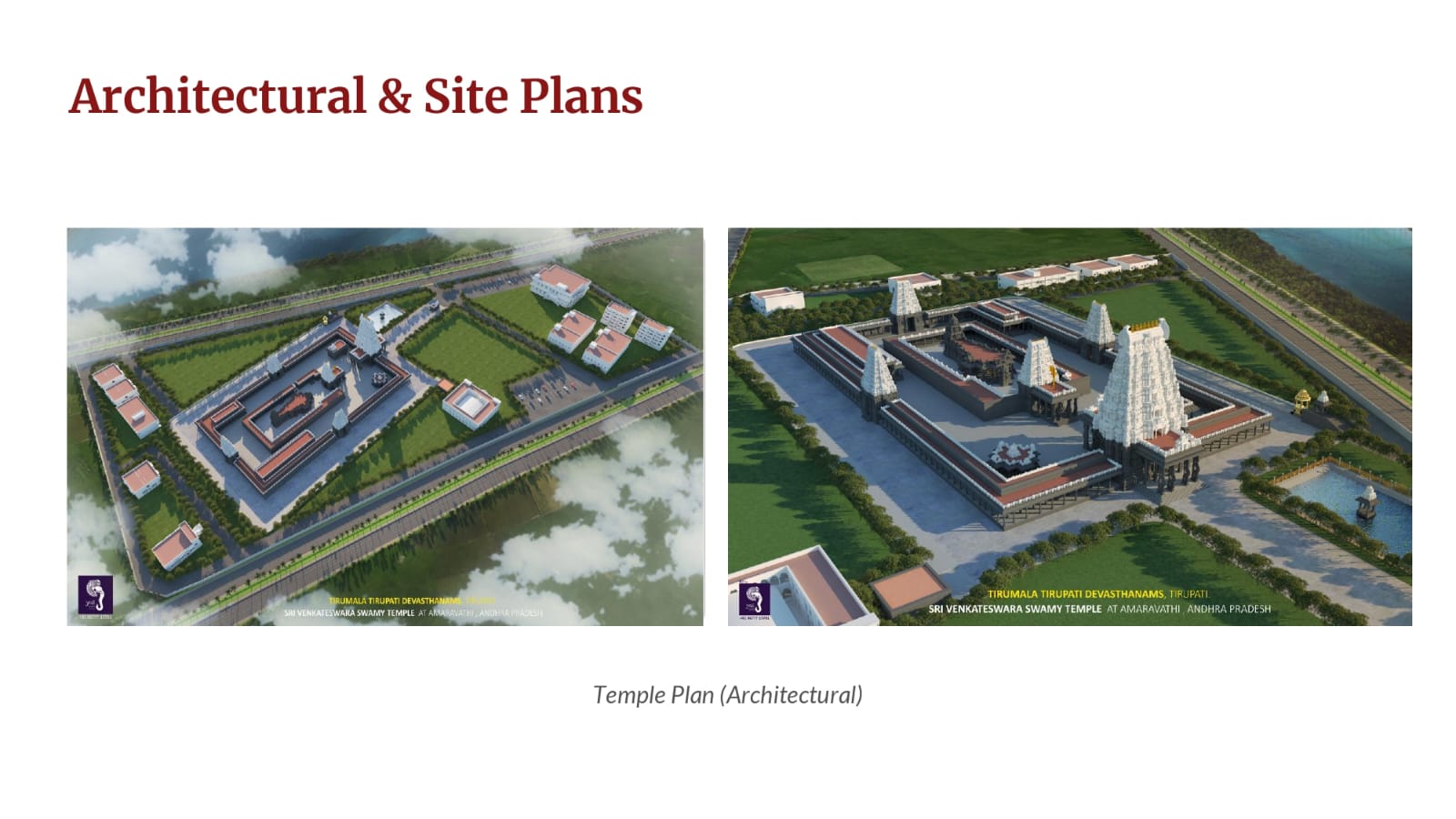 రాజధాని అమరావతిని ఆధ్యాత్మిక కేంద్రంగా తీర్చిదిద్దాలనే లక్ష్యంతో, తిరుమల శ్రీవారి ఆలయానికి ప్రతిరూపంగా కృష్ణా నది తీరాన 25.417 ఎకరాల్లో వెంకన్న ఆలయాన్ని నిర్మించాలని 2019కి ముందు టీడీపీ ప్రభుత్వం సంకల్పించింది. అయితే, వైసీపీ ప్రభుత్వం అధికారంలోకి వచ్చాక ఈ పనులు ముందుకుసాగలేదు. తాజాగా కూటమి ప్రభుత్వం అధికారంలోకి రావడంతో, ఆగిపోయిన ఈ పనులకు మళ్లీ జీవం పోసి, వేగంగా పూర్తిచేయాలని నిర్ణయించింది.