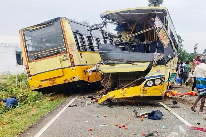 వివరాల్లోకి వెళితే, ఒక బస్సు తిరుప్పూర్ నుంచి కారైకుడి వస్తుండగా... మరో బస్సు కారైకుడి నుంచి దిండిగల్కు ప్రయాణిస్తోంది. తిరుపత్తూర్ వద్దకు రాగానే ఈ రెండు బస్సులు ఢీకొన్నాయి. ప్రమాదం జరిగిన వెంటనే స్థానికులు సహాయక చర్యలు చేపట్టి, క్షతగాత్రులను శివగంగ ప్రభుత్వ ఆసుపత్రికి తరలించారు. గాయపడిన వారిలో కొందరి పరిస్థితి విషమంగా ఉండటంతో మృతుల సంఖ్య పెరిగే అవకాశం ఉందని అధికారులు ఆందోళన వ్యక్తం చేస్తున్నారు.