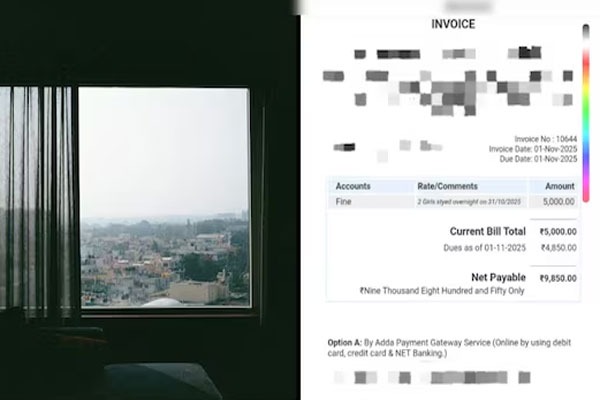 వివరాల్లోకి వెళితే... బెంగళూరుకు చెందిన ఓ యువకుడు తన ఫ్లాట్‌మేట్‌తో కలిసి ఓ అపార్ట్‌మెంట్‌లో నివసిస్తున్నాడు. అక్టోబర్ 31, 2025 రాత్రి ఇద్దరు యువతులు వారి ఫ్లాట్‌లో బస చేశారు. ఈ విషయం తెలుసుకున్న సొసైటీ యాజమాన్యం, నిబంధనలు ఉల్లంఘించారంటూ వారికి రూ.5,000 ఫైన్ వేసింది. దీనికి సంబంధించిన ఇన్‌వాయిస్‌లో "ఇద్దరు అమ్మాయిలు రాత్రి బస చేశారు" అని స్పష్టంగా పేర్కొంది.
