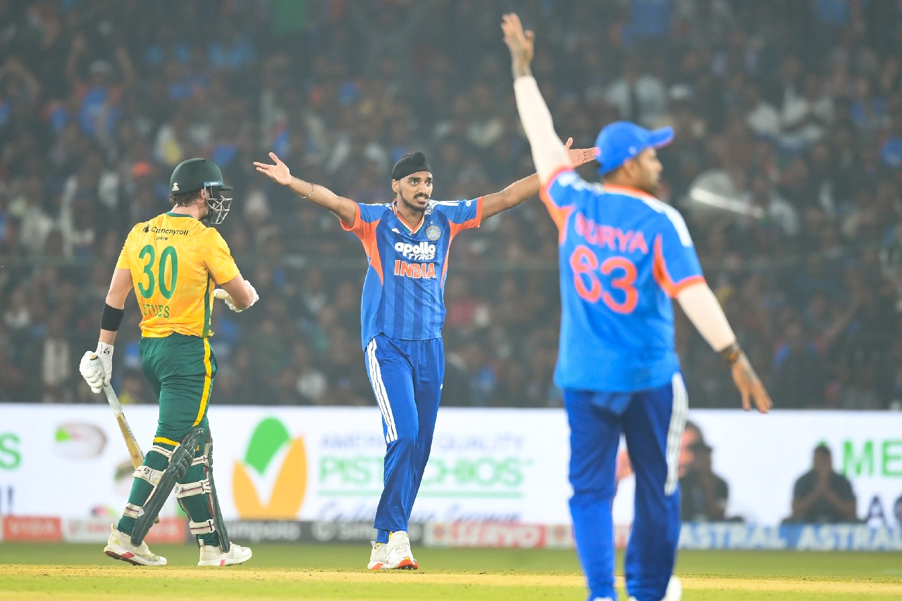 అనంతరం 176 పరుగుల లక్ష్యంతో బరిలోకి దిగిన దక్షిణాఫ్రికాకు భారత బౌలర్లు చుక్కలు చూపించారు. ఇన్నింగ్స్ రెండో బంతికే ఓపెనర్ క్వింటన్ డికాక్ను అర్షదీప్ సింగ్ డకౌట్గా పెవిలియన్ పంపాడు. కాసేపటికే ప్రమాదకర ట్రిస్టన్ స్టబ్స్ (14)ను కూడా అర్షదీప్ ఔట్ చేయగా, కెప్టెన్ మార్ క్రమ్ (14)ను అక్షర్ పటేల్ వెనక్కి పంపాడు. ప్రమాదకర డేవిడ్ మిల్లర్ (1) ను హార్దిక్ పాండ్యా అవుట్ చేయడంతో దక్షిణాఫ్రికా నాలుగో వికెట్ కోల్పోయింది. దీంతో సఫారీ జట్టు ఆరంభంలోనే తీవ్ర ఒత్తిడిలో పడింది.