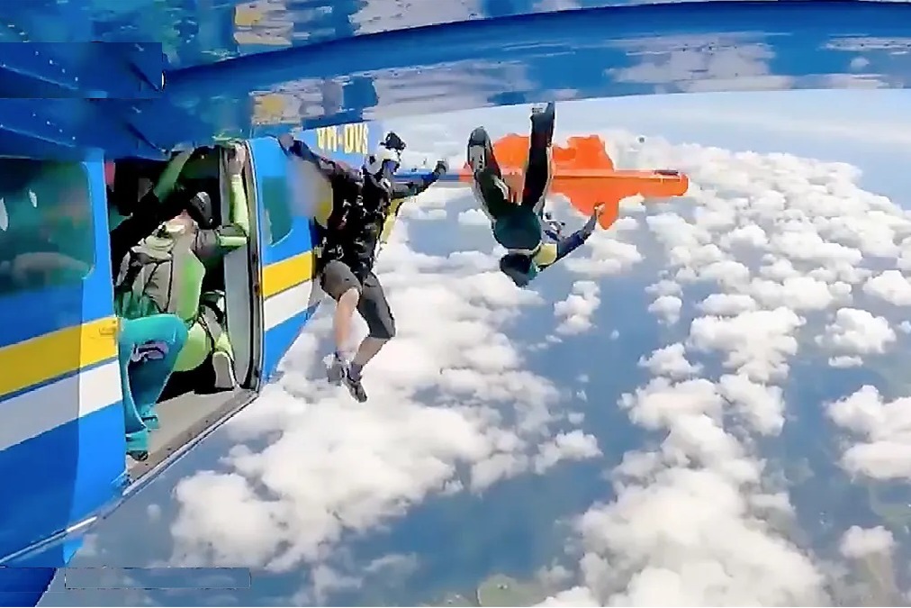కొంతమంది ఔత్సాహిక స్కైడైవర్లు ఓ విమానంలో ఆకాశంలోకి వెళ్లి దాదాపు 15 వేల అడుగుల ఎత్తులో నుంచి కిందకి దూకుతున్నారు. ఈ క్రమంలో ఓ స్కైడైవర్ తొందరపడి పారాచూట్ బటన్ ను ముందే నొక్కాడు. దీంతో అతను విమానం అంచున ఉండగానే పారాచూట్ విచ్చుకుంది. గాలి వేగానికి అది విమానం తోకను చుట్టేసుకుంది. ఇంతలోనే ఆ స్కైడైవర్ విమానంలో నుంచి దూకేశాడు.