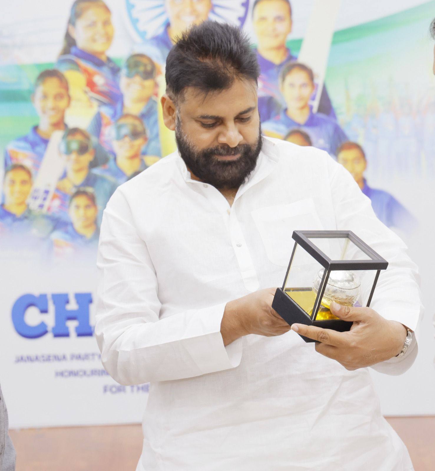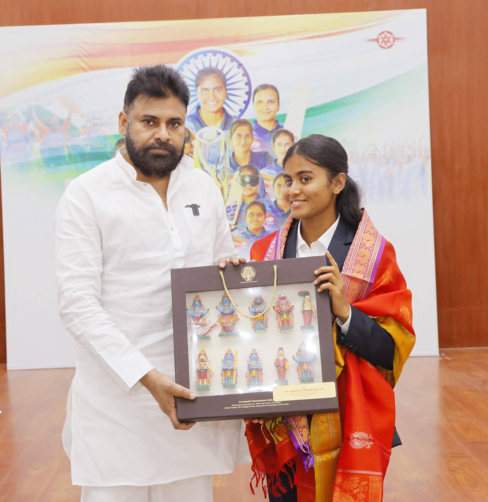 విశ్వవిజేతలుగా నిలిచిన క్రీడాకారిణులకు అభినందనలు తెలిపిన పవన్ కల్యాణ్, ఒక్కో క్రికెటర్కు రూ.5 లక్షల చొప్పున, శిక్షకులకు రూ.2 లక్షల చొప్పున చెక్కులను అందజేశారు. ప్రతి క్రీడాకారిణికి పట్టుచీర, శాలువాతో పాటు జ్ఞాపిక, కొండపల్లి బొమ్మలు, అరకు కాఫీ వంటి బహుమతులు అందించి గౌరవించారు. అంధ క్రికెటర్లు సాధించిన ఈ విజయం దేశానికే గర్వకారణమని ప్రశంసించారు.