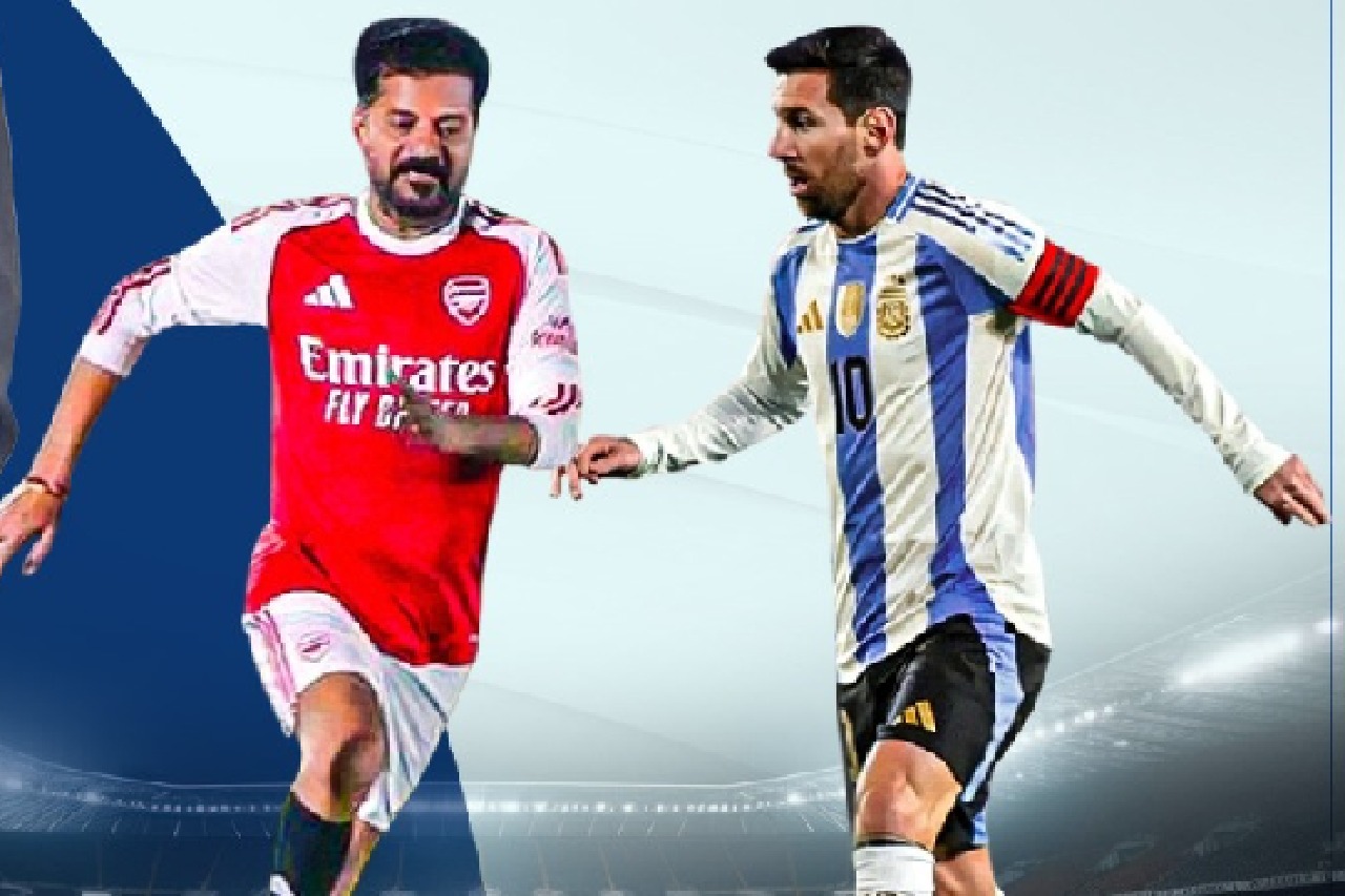 ఫుట్‌బాల్ మ్యాచ్ కోసం రేవంత్ రెడ్డి, మెస్సీ ఉప్పల్ స్టేడియానికి చేరుకున్నారు. సింగరేణి ఆర్ఆర్, అపర్ణ జట్ల మధ్య మ్యాచ్ ప్రారంభమైంది. రేవంత్ రెడ్డి సింగరేణి ఆర్ఆర్ తరఫున, మెస్సీ అపర్ణ జట్టు తరఫున బరిలోకి దిగుతున్నారు.