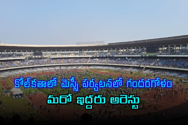 ఫుట్బాల్ దిగ్గజం లియోనెల్ మెస్సీ గోట్ టూర్ ఇండియాలో భాగంగా శనివారం కోల్కతాలో నిర్వహించిన కార్యక్రమంలో పాల్గొన్న విషయం విదితమే. ఈ నేపథ్యంలో స్టేడియంలో ఉద్రిక్త పరిస్థితులు నెలకొనడంతో పోలీసులు సోమవారం మరో ఇద్దరు వ్యక్తులను అరెస్టు చేశారు. స్టేడియంలోని కుర్చీలను ధ్వంసం చేసి గందరగోళం సృష్టించినందుకు గాను శుభోప్రతిమ్, గౌరబ్ బసు అనే ఇద్దరు వ్యక్తులను అదుపులోకి తీసుకున్నట్లు పోలీసులు వెల్లడించారు.
