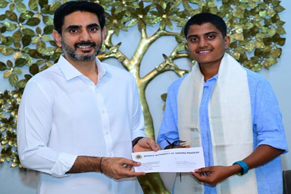- చెక్కును స్వయంగా అందజేసిన మంత్రి నారా లోకేశ్