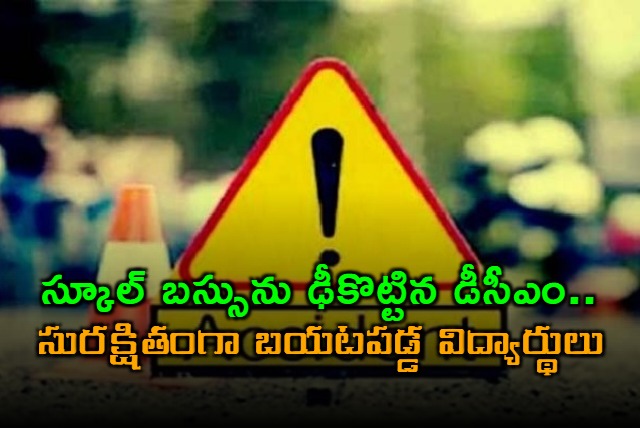 School bus accident: స్కూల్ బస్సును ఢీకొట్టిన డీసీఎం.. సురక్షితంగా బయటపడ్డ విద్యార్థులు