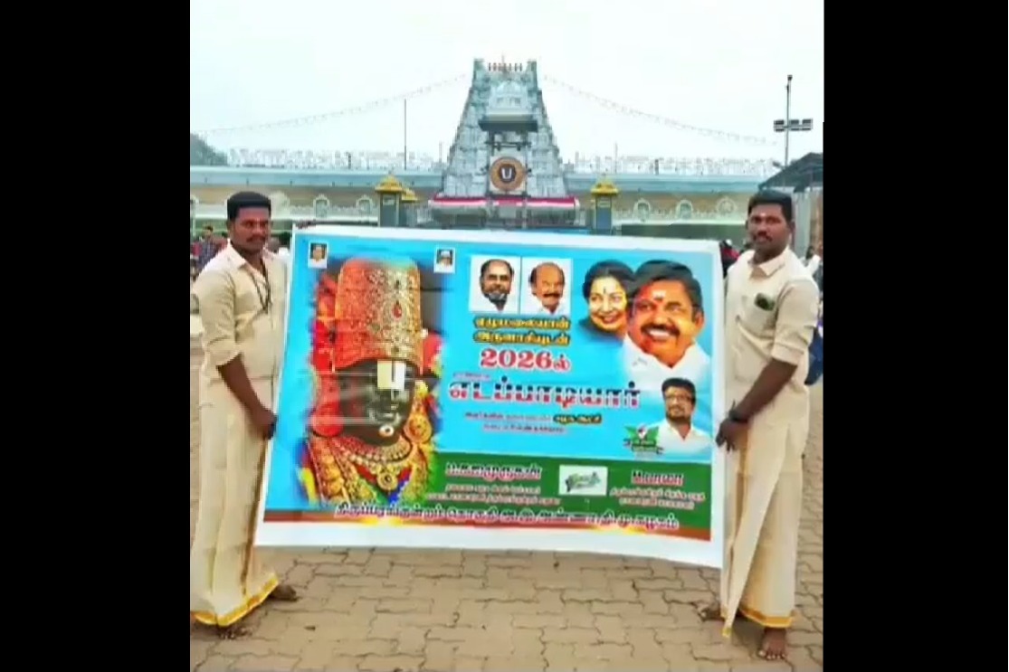 - అన్నాడీఎంకే నేతల పోస్టర్ తో తమిళనాడు భక్తుల పోజులు