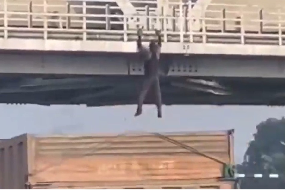 యూపీలో హైవే బ్రిడ్జికి వేలాడుతూ యువకుడి ప్రమాదకర స్టంట్