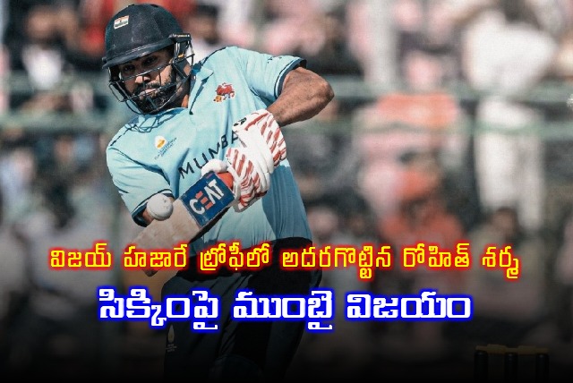 విజయ్ హజారే ట్రోఫీలో భాగంగా జైపూర్ వేదికగా సిక్కింతో జరిగిన మ్యాచ్‌లో ముంబై ఎనిమిది వికెట్ల తేడాతో ఘన విజయం సాధించింది. ఈ మ్యాచ్‌లో ముంబై ఆటగాడు రోహిత్ శర్మ అద్భుత ప్రదర్శన కనబరిచాడు. తొలుత బ్యాటింగ్ చేసిన సిక్కిం నిర్ణీత 50 ఓవర్లలో 7 వికెట్ల నష్టానికి 236 పరుగులు చేసింది. అనంతరం బ్యాటింగ్‌కు దిగిన ముంబై 30 ఓవర్లలోనే 2 వికెట్లు కోల్పోయి 237 పరుగుల లక్ష్యాన్ని సునాయాసంగా ఛేదించింది.