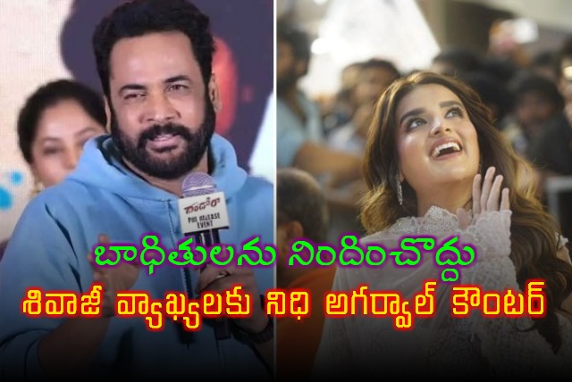 హీరోయిన్ల డ్రెస్సింగ్‌పై నటుడు శివాజీ చేసిన వ్యాఖ్యలు వివాదాస్పదంగా మారాయి. ఈ వ్యాఖ్యలపై తాజాగా నటి నిధి అగర్వాల్ స్పందించారు. వేధింపులకు గురైన బాధితులను నిందించడం సరికాదని, ఆయన వ్యాఖ్యలు తప్పుదోవ పట్టించేలా ఉన్నాయని పరోక్షంగా చురకలంటించారు.