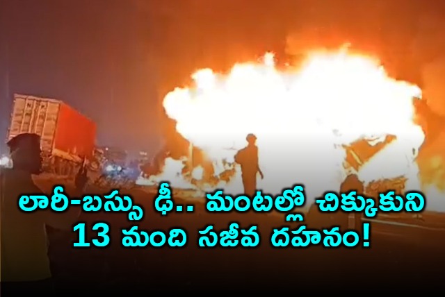 కర్ణాటకలో ఈ తెల్లవారుజామున ఘోర రోడ్డు ప్రమాదం సంభవించింది. ప్రయాణికులతో వెళ్తున్న ఓ ప్రైవేట్ ట్రావెల్స్ బస్సును లారీ ఢీకొట్టడంతో ఒక్కసారిగా మంటలు చెలరేగాయి. ఈ ప్రమాదంలో బస్సు పూర్తిగా కాలిబూడిదవగా.. ప్రాథమిక సమాచారం ప్రకారం 13 మంది ప్రయాణికులు మంటల్లో చిక్కుకుని సజీవ దహనమైనట్లు తెలుస్తోంది.