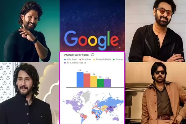 ఈ నెల 24 నాటి గూగుల్ డేటా ప్రకారం టాప్-5 జాబితాలో అల్లు అర్జున్ మొదటి స్థానంలో ఉండగా, ప్రభాస్ రెండో స్థానంలో నిలిచారు. వారి తర్వాత వరుసగా మహేశ్ బాబు, పవన్ కల్యాణ్, జూనియర్ ఎన్టీఆర్ ఉన్నారు.
